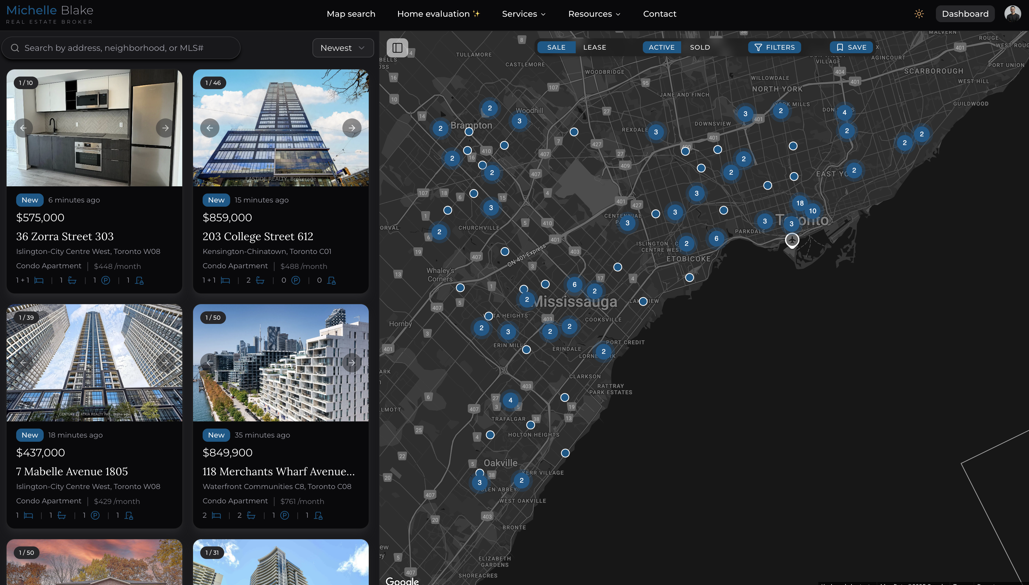 Let your clients search for properties the way they want—by neighborhood, school district, or drawing their own search area. Our map search integrates directly with MLS data, showing live listings with photos, pricing, and key details. Filters for bedrooms, price range, property type, and more help buyers find their perfect home faster.
